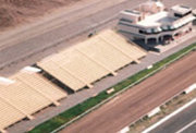 cuenta con dos secciones de gradas de 36 metros de ancho cada una, con