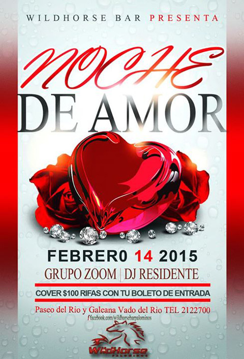 Este sabado 14 de febrero ven a pasar de un dia de puro amor con un gran grupo que te hara pasar de una excelente noche grupo Zoom & Dj Residente no te lo pierdas ven con tu pareja a disfrutar cover $100.00 con el boleto participas en las rifas ya sabes en el WildHorse Palominos en Hermosillo