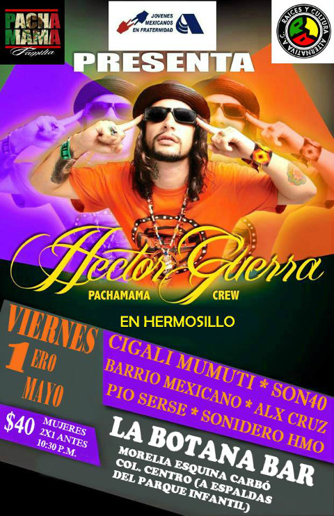 Hector Guerra Pachamama Crew estara en Hermosillo este viernes 01 de mayo con musica en vivo y con bandas como: